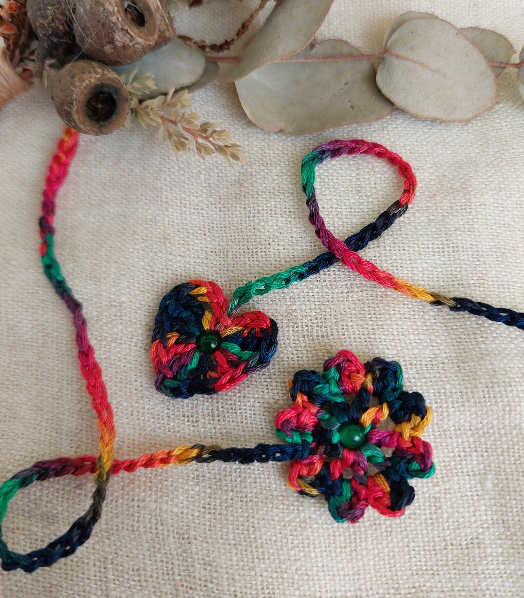 Beautiful umbilical cord ties for use during the third stage of birth, each one lovingly hand-crafted by me personally, using hand-dyed threads from a mother-daughter duo whose work is inspired by the tones and hues of a country garden and the glorious Australian bush.