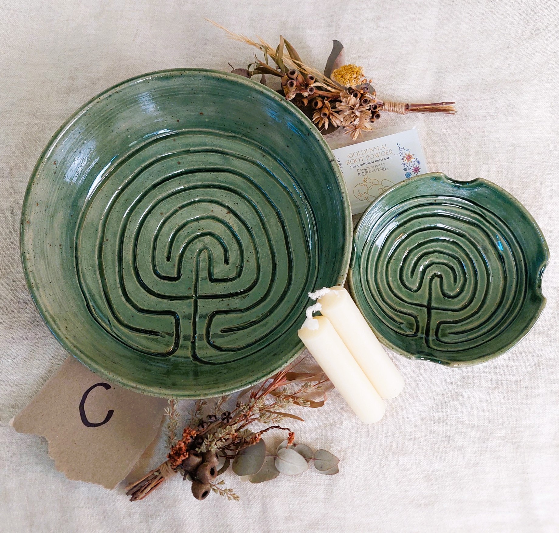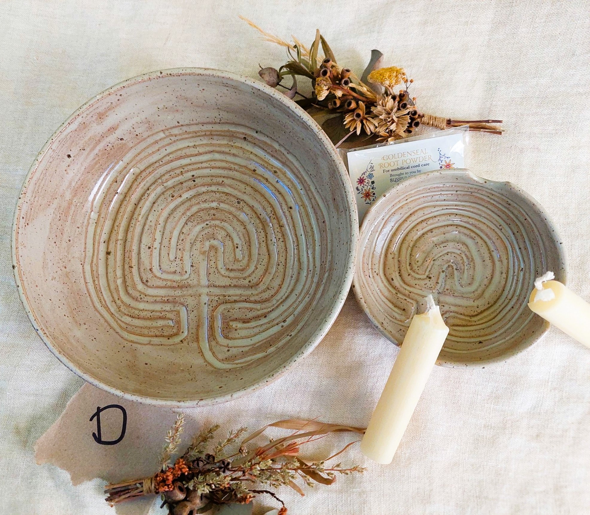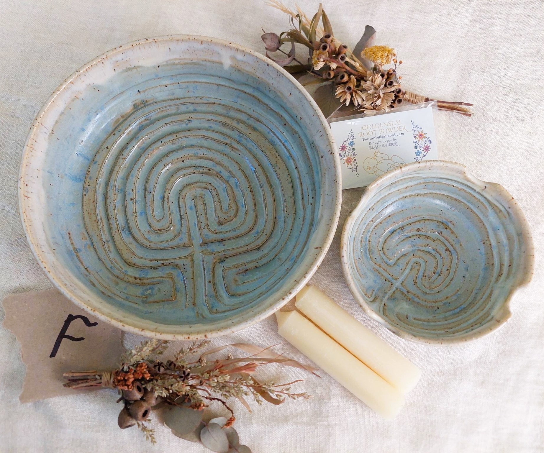 Here we offer cord burning bowls for a gentle, slow third stage, hand crafted by local artisan, Miss Potter.